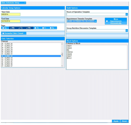 8. In the Clinic Selection list, choose the appropriate clinic.