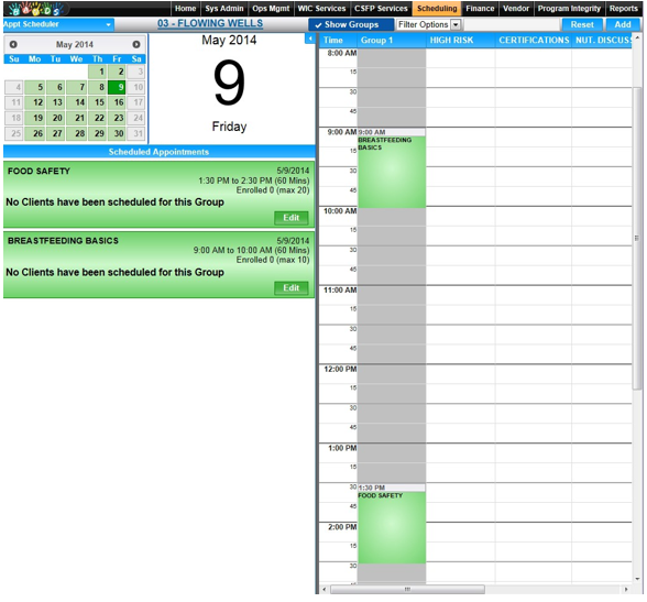 WIC Appointments and Nutrition Discussion Groups are now available for scheduling clients.