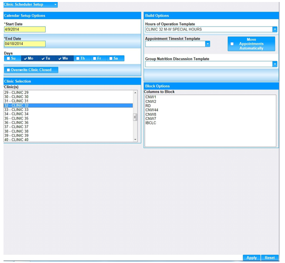 7. In the Clinic Selection list, choose the appropriate clinic.