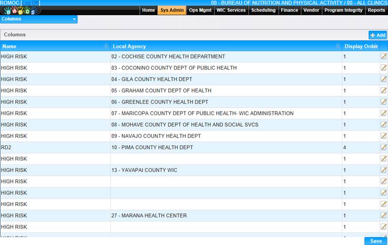 • Enter the Display Order (This determines the order in which the Column name will display throughout the application)