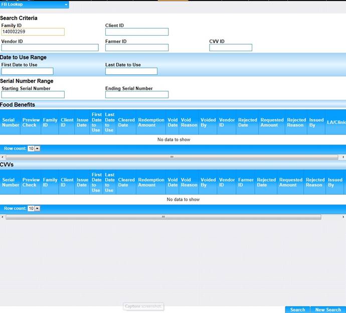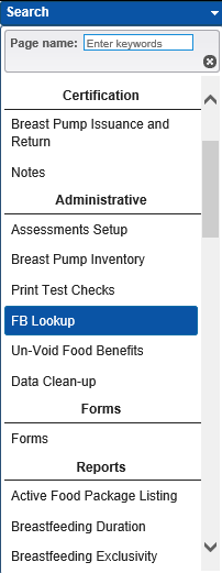 To access the FB Look Up page, choose the FB Look Up from the WIC Services Navigation Pick List.