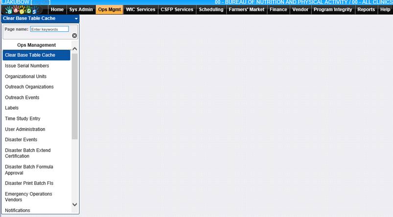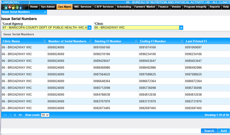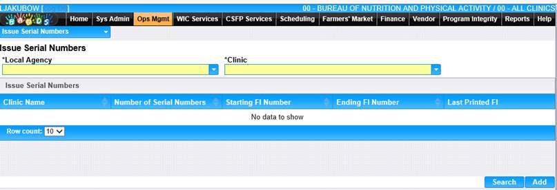 2. Select a local agency and a clinic from the drop-down lists and click the Search button.