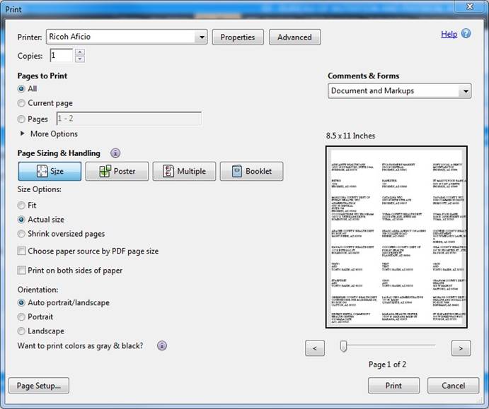 6. Use the mouse to hover over the top of the form and use the print icon in the toolbar to print the labels. A Print dialog window will appear, and the user can select their print options, including multiple copies. The user’s Print dialog box may look different.