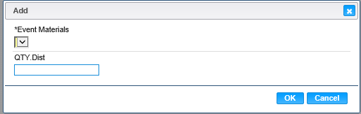 5. To add Event Materials, click the Add button in the Event Materials section. The Add window displays.