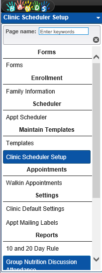 The Navigation Pick List allows navigation through the HANDS Scheduling Area and from the Scheduling area back to WIC Services.