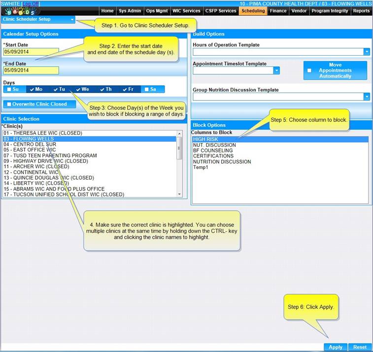 1. In the Scheduling Module menu, select Clinic Scheduler Setup.